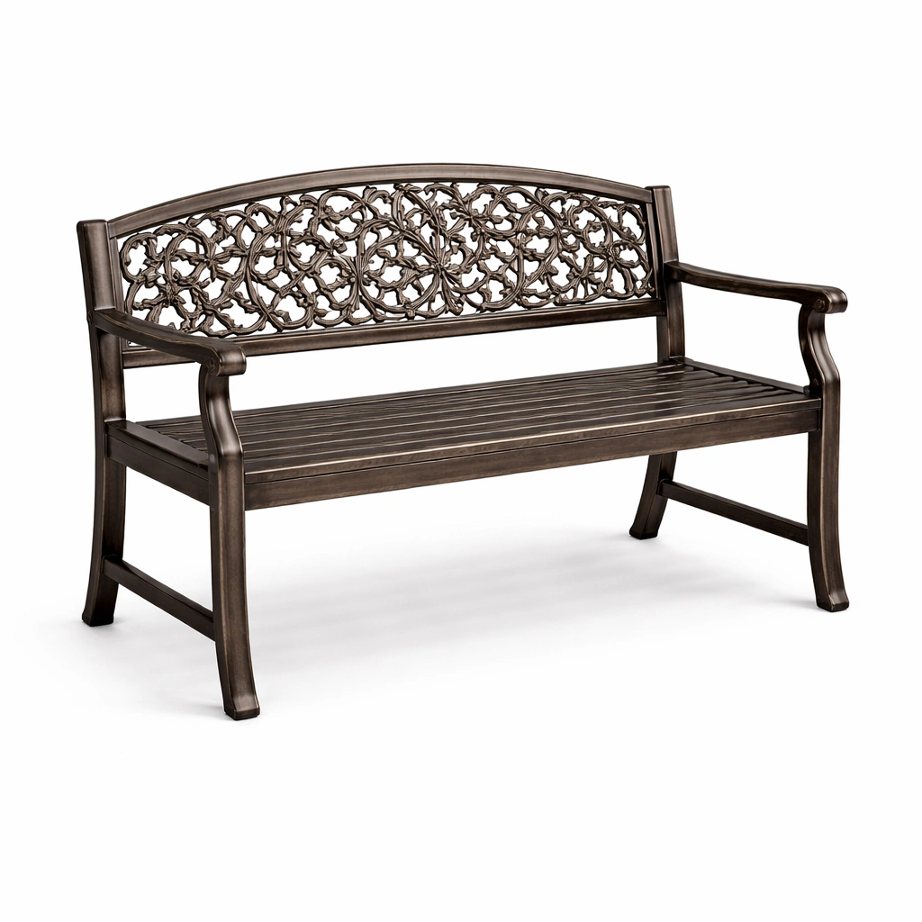 Banco de exterior de aluminio fundido marrón